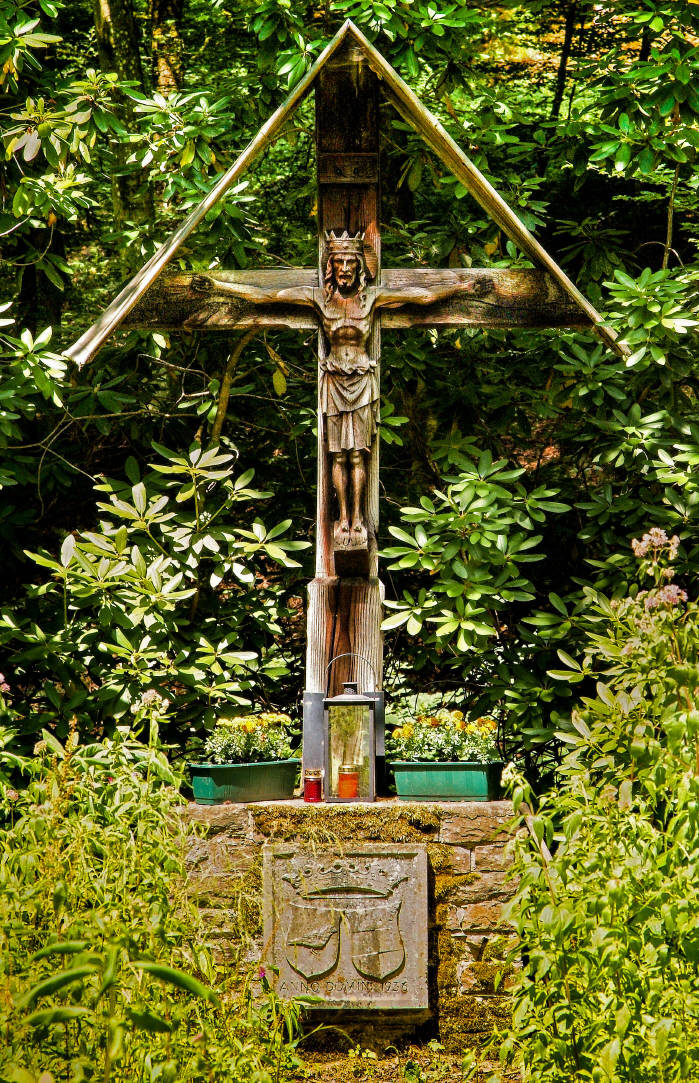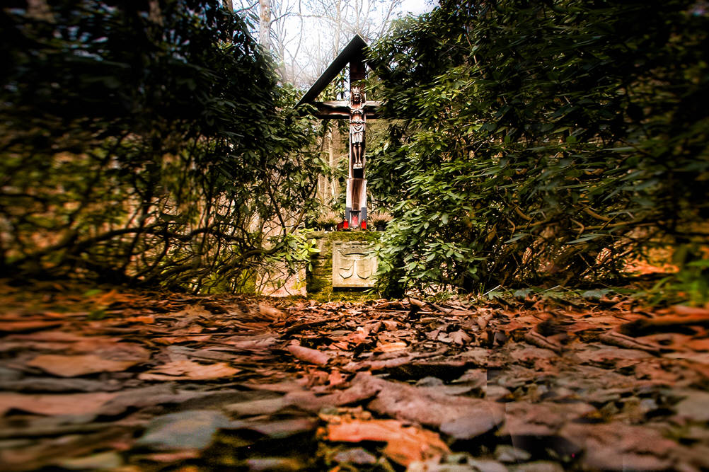 entspannen, unternahm ich einen Spaziergang. Diesmal in der Bergischen Rhoen bei Lindlar, und entdeckte zufaellig in einem Hain versteckt ein christliches Kreuz.